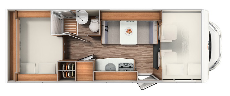 Familien-Alkoven mit einer großen Heckgarage. Ausreichend Stauraum für das gesamte Urlaubsgepäck.